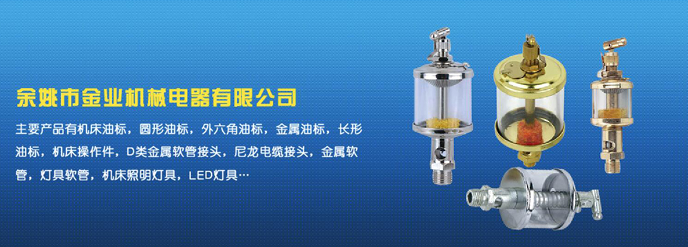 余姚市金業(yè)機械電器有限公司主要產(chǎn)品有機床油杯,圓形油標,外六角油標,金屬油標,長形油標,機床操作件,D類金屬軟管接頭,尼龍電纜接頭,金屬軟管,燈具軟管,機床照明燈具,LED燈具,DGT型線路軟管防護套,TL型鋼制電纜手軌,電纜尼龍拖鏈,可調(diào)塑鋼冷卻管等產(chǎn)品,規(guī)格齊全,全部自制。望國內(nèi)外客戶前來考察:共同發(fā)展…